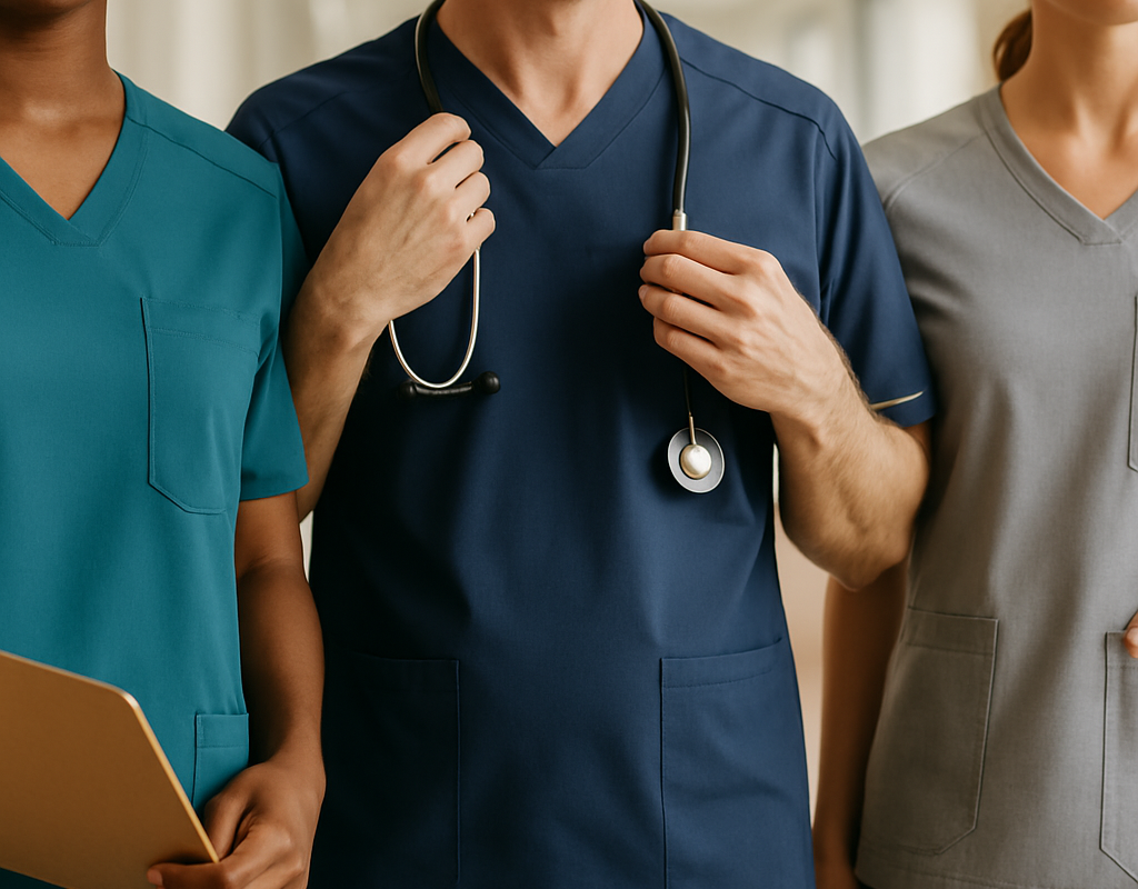 Das sind typische Einsatzfälle und Anforderungen, die klinische Arbeitskleidung erfüllen muss — z. B. Hygiene, Bewegungsfreiheit, Waschbeständigkeit oder Identifikation von Berufsgruppen. Es geht darum, wie Kleidung im Alltag funktioniert, nicht nur wie sie aussieht.